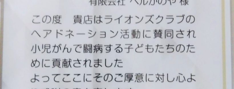 ヘアドネーションご賛同とご協力頂いた